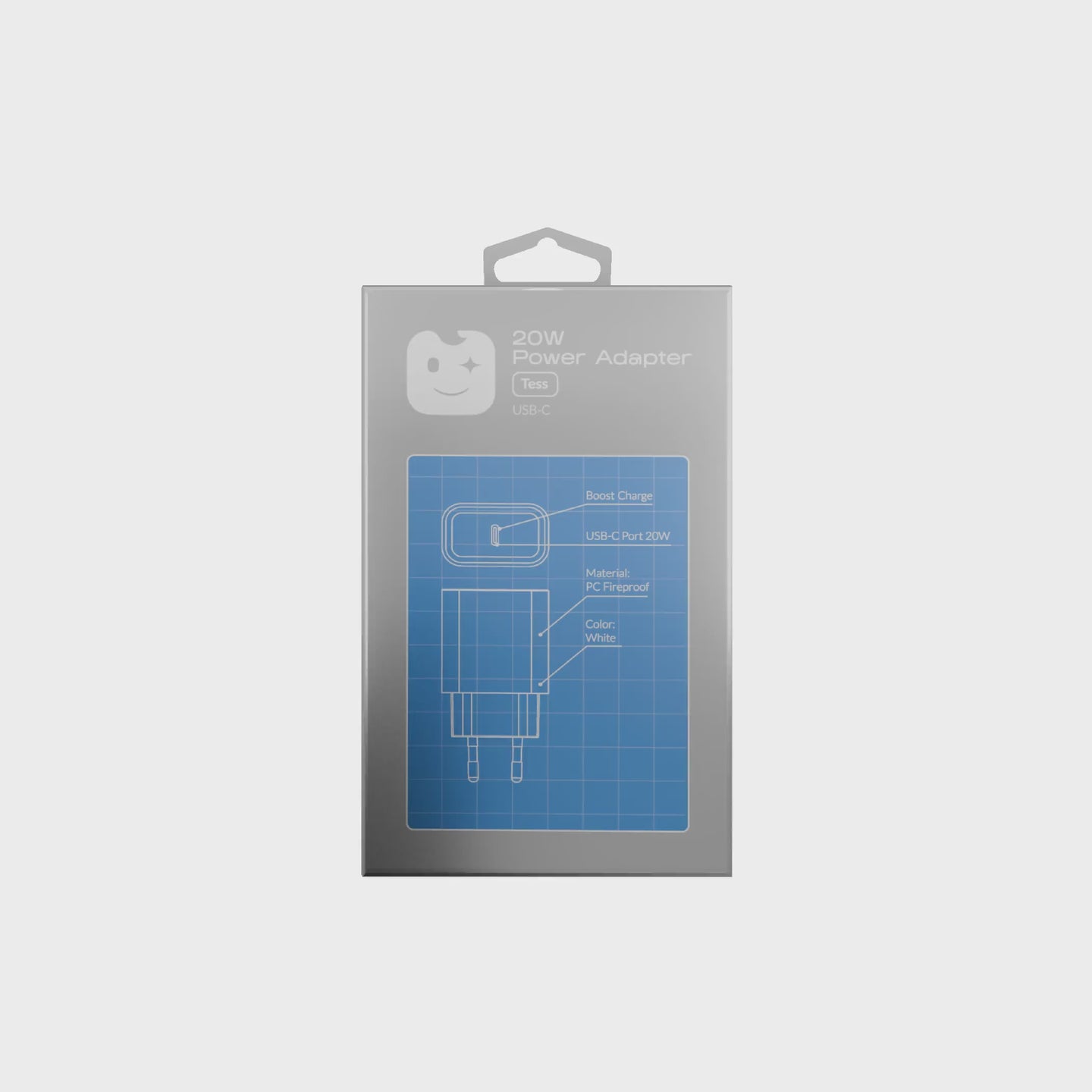 Dir is Tess: de 20W USB-C oplader van Faironics. Compact, veilig en ideaal voor snel opladen van iPhone, Samsung en andere apparaten.